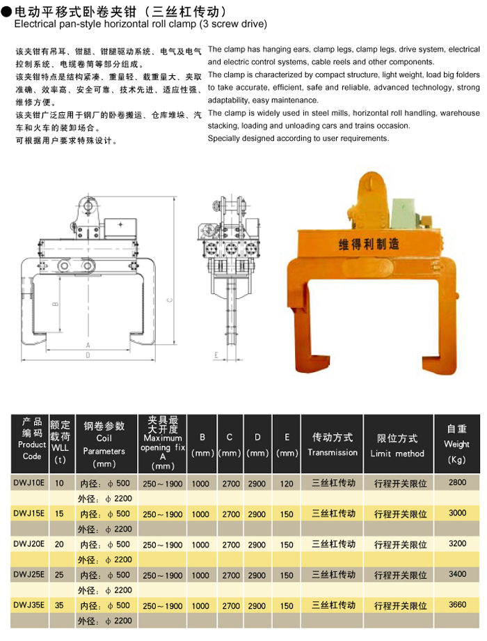 冶金吊具产业> 电动平移式卧卷夹钳(三丝杠传动)
