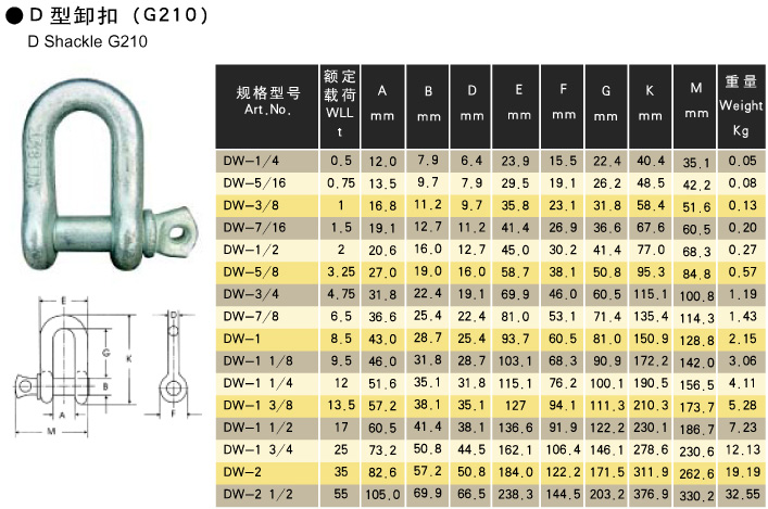 卸扣产业> D型卸扣(G210 美标)